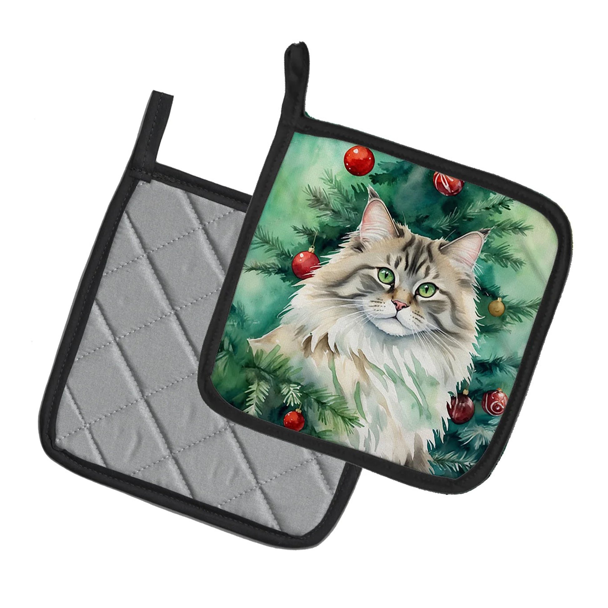 Caroline's Treasures Decorative Siberian Cat by the Christmas Tree Pot Holders